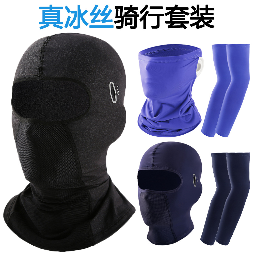 冰丝骑行面罩夏季户外防晒头套锦纶冰丝挂耳头巾运动冷感冰袖组合