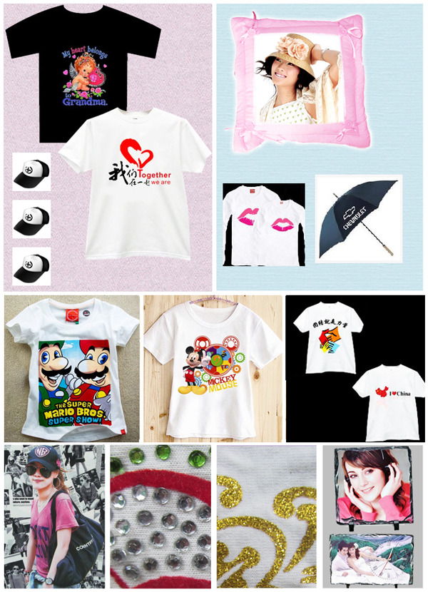 烫画机广泛用于服装加工,个性化制作。适合各种烫画:发泡烫画、渗透烫画、升华烫画、亮/哑光烫画、柯式烫画、金/银葱烫画、玻璃珠烫画、植毛烫画、泳装烫画、T恤转印纸、割字转印烫画、金/银铂烫画、洗水唛、袜标烫画、美国烫画等畅销全球!烫画于文化衫、童装、内衣、牛仔服装、手袋、雨伞、鞋、帽、书包、羊毛衫、泳衣、袜子、手套等产品。具有色彩亮丽、画面逼真、品质稳定、耐洗不掉色等特点。