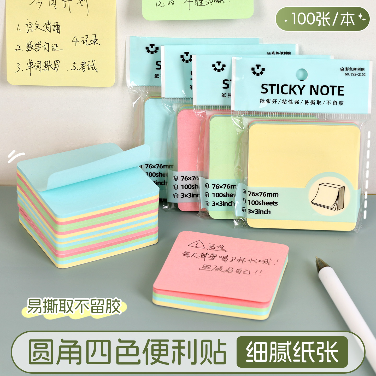 彩色便利贴圆角强粘性留言记事N次贴学生用加厚四合一便签纸批发