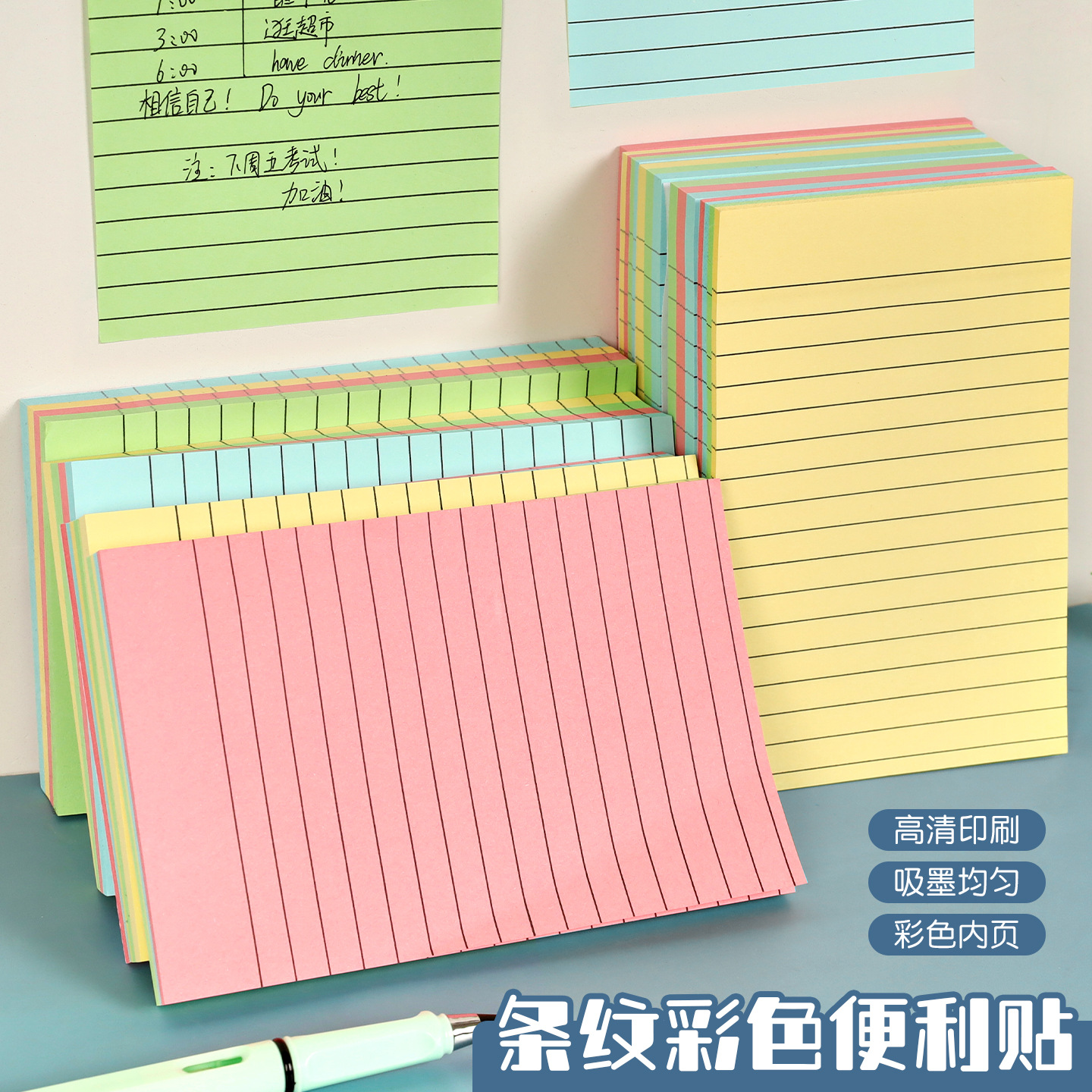 彩色横线大号便利贴 学生用可撕便签纸记事留言N次贴高粘性便签本