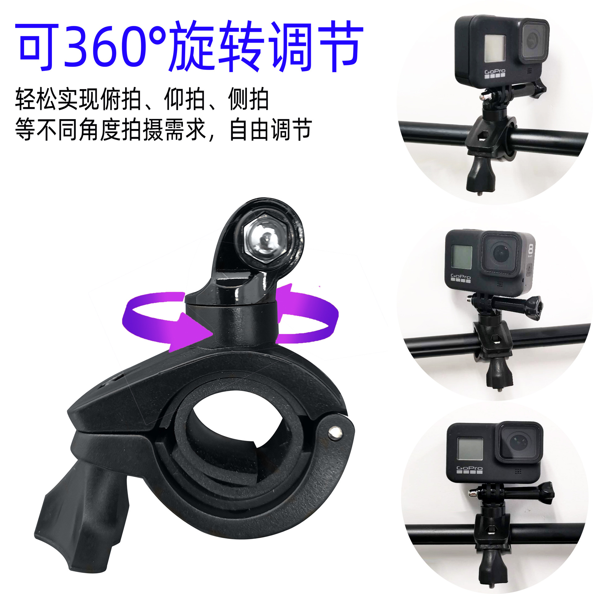 应用于单车,摩托车,电单车,后视镜上,可以安装行车记录仪,运运相机,小手电,小型摄像头,激光笔等