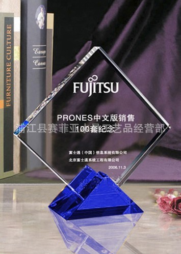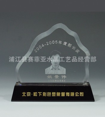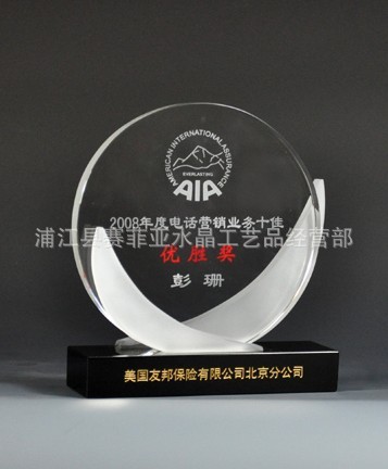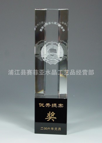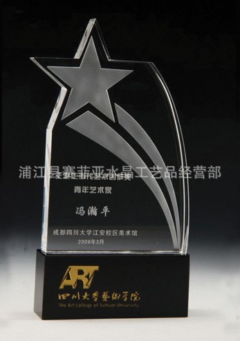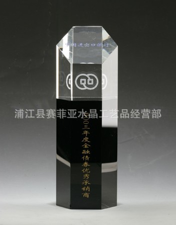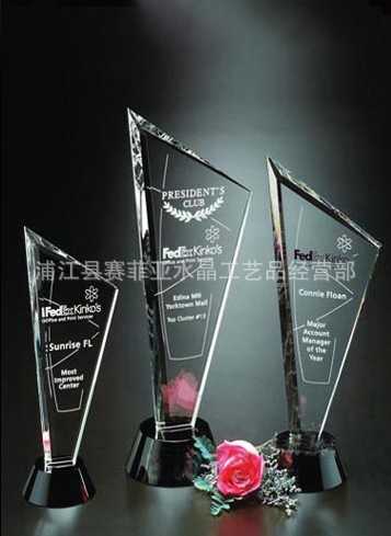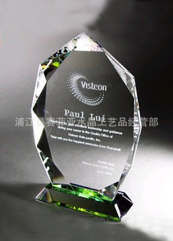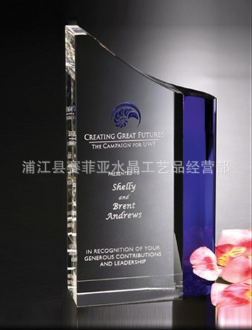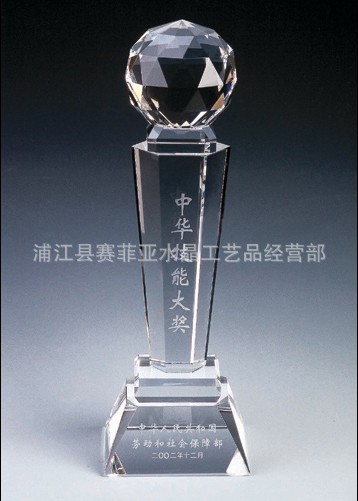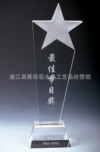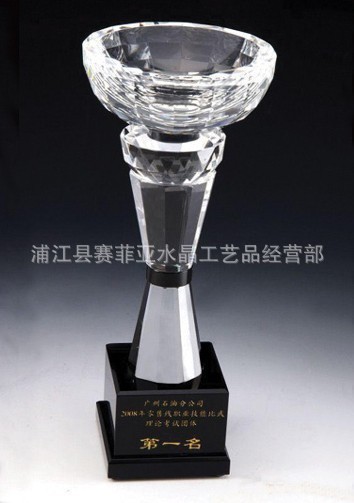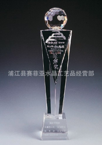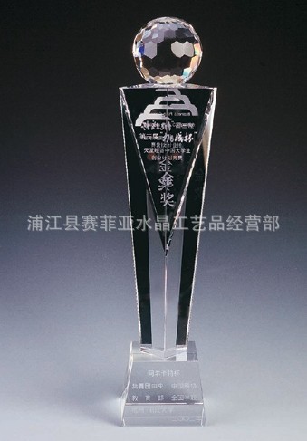 浦江县赛菲亚水晶工艺品经营部,专业生产精美水晶奖杯,水晶奖杯定做,是浦江水晶奖杯厂家货源之一,多年来为广大客户订做了各种各样的高中低档水晶奖杯。水晶奖杯是一种高尚纯洁的象征,常用于政府和企业颁发的奖品。它晶莹剔透,闪闪发光,手感细腻,还可以在上面刻字、纹图案。用的材料水晶---像冰雪一样的干净。用它来做奖品给优秀的人是好不过了。