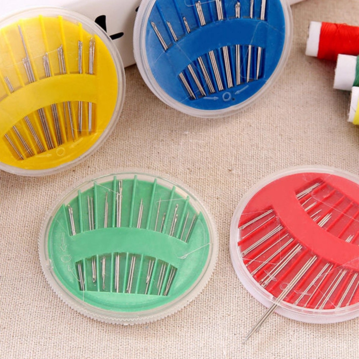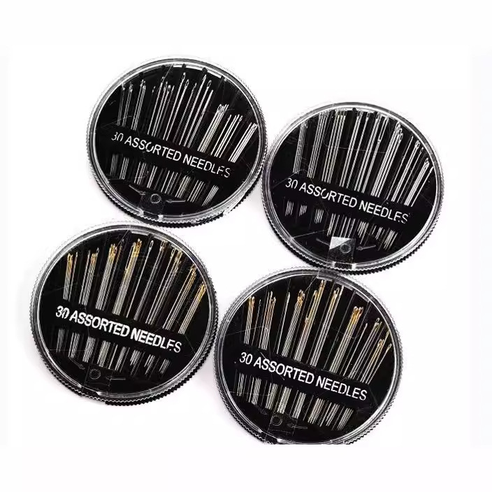 塑盘金尾手缝针,内装各规格针共30枚。圆盘直径约6.3cm
