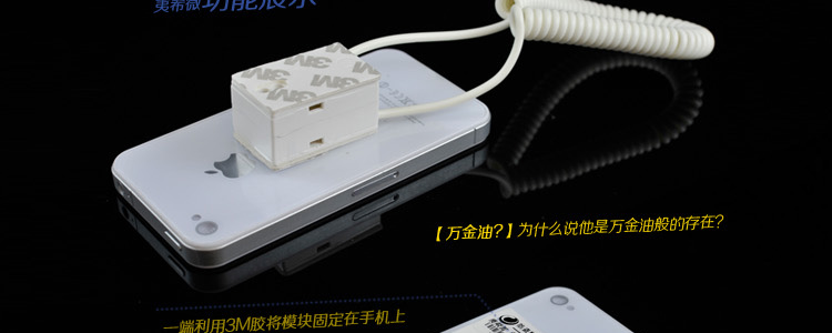 本展示架没有报警功能适用于手机机模或比较廉价的样品,因为没有报警功能,不建议本品用于真机或价格较贵的商品展示。本品外露弹簧线,略有凌乱感,我们正在开发内置拉线的展示架满足亲们的需求。
