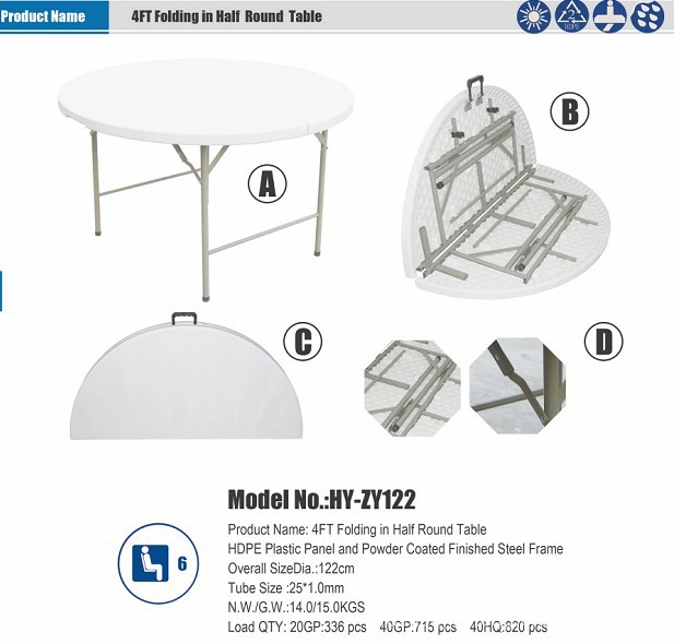 | 圆桌ZY122 | 122*74cm 净重:12kg | 1个/纸箱 毛重:13kg | 20尺小柜:355 40尺平柜:735 40尺高柜:860 | 面议 |