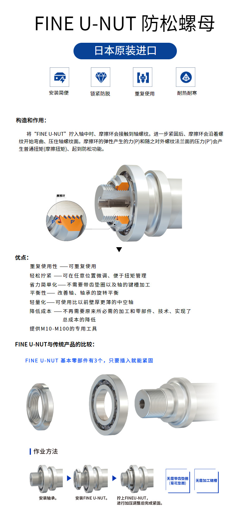 日本富士ロック丸ナット炭素鋼4.8精密軸受緩み止めナット輸入セルフロックナット留め具