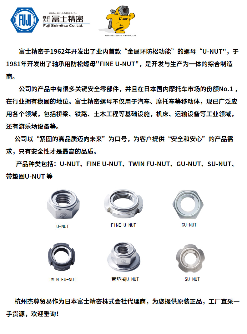 日本製 富士精機 Uナット 8.8級 六角丸ナット 炭素鋼摩擦板 ルースナット