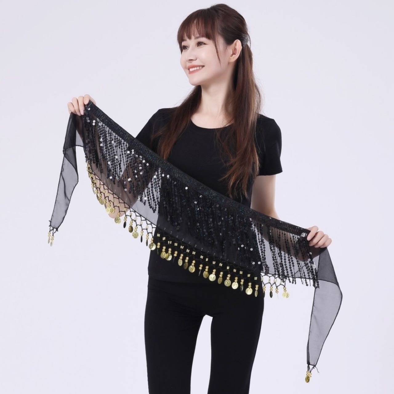 【宝贝描述】:本产品以手工编织而成,金色的吊币及圆珠,在热舞的同时感受到流光异彩的效果。精细的手工钉珠特别是配上金色的吊币,让你在热舞的同时,发出沙沙的响声,感受到热情洋溢的肚皮舞的欢乐。是舞蹈配饰,舞蹈表演的合适选择,适合于手链,脚链,臂链等身体部位的配饰。