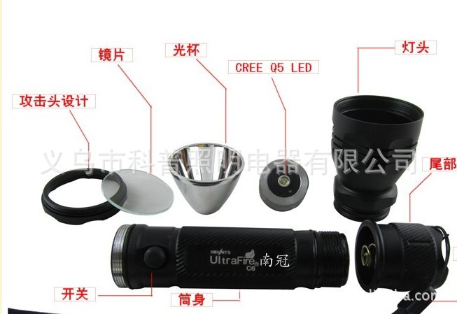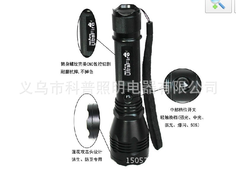 本款手电开关位置:在手电中部(按下有滴答声为开和关,换档轻轻按下开关即可)