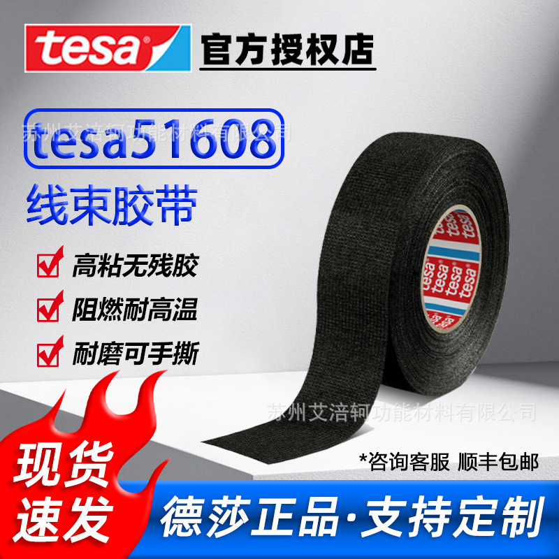 现货tesa51608PET绒布绝缘耐磨捆扎汽车胶带德莎51608降噪线束