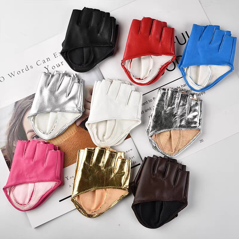 レディースハーフフィンガーグローブ、フェイクレザー、DSパフォーマンス、ストリートダンス、薄型PU、ナイトクラブパフォーマンス、写真撮影、ダンス用レザーグローブ