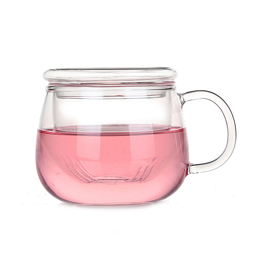 クリエイティブなガラスの花のティーカップのティーカップはフィルター付きの女性のティーカップを飲みます。フィルター付きのオフィスカップは蓋付きのマグカップです。