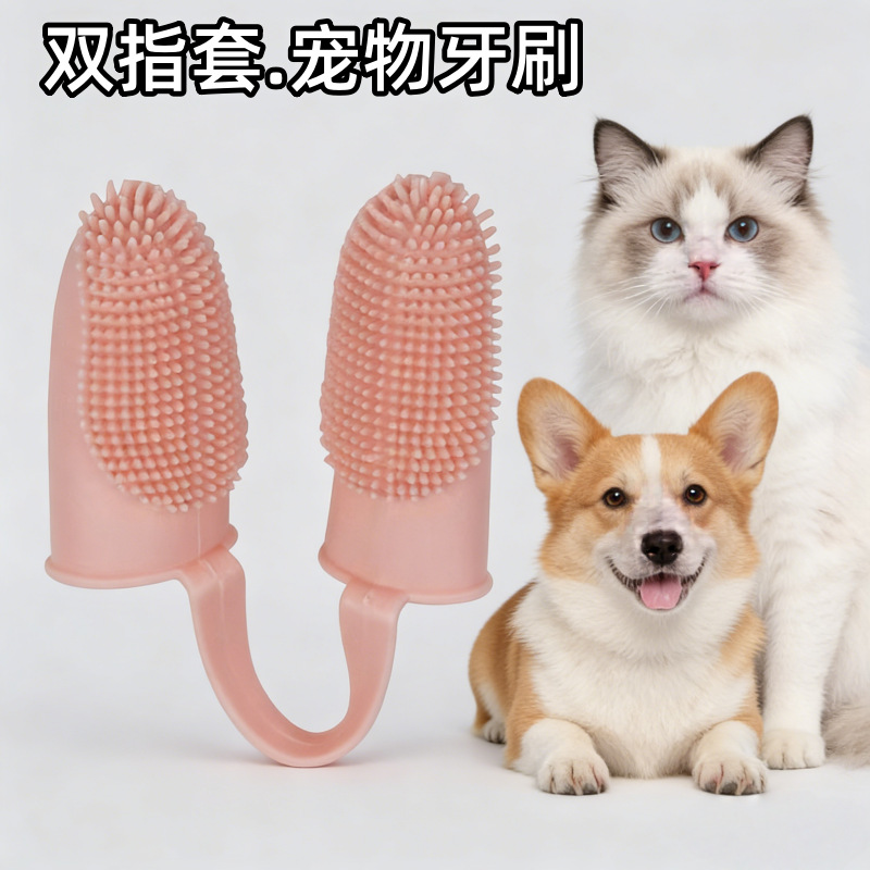 卸売りペット二本指歯ブラシ犬猫ペット用品歯洗浄指カバー口腔洗浄ツール