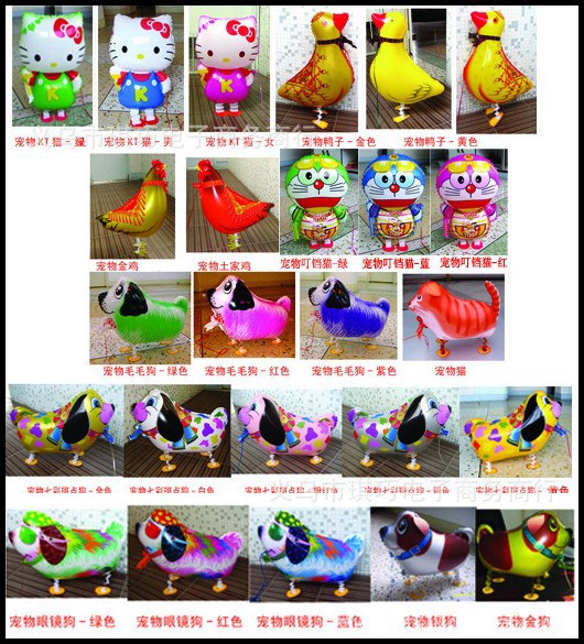 铝膜宠物走路气球系列球 恐龙,企鹅,乌龟,青蛙,猫,狗,猪,鸡,鸭,喜洋洋,KT猫,唐老,机器猫\金、粉猪,金.银狗,班点狗,美国奶牛,走路米妮,走路恐龙,走路美羊羊 等等