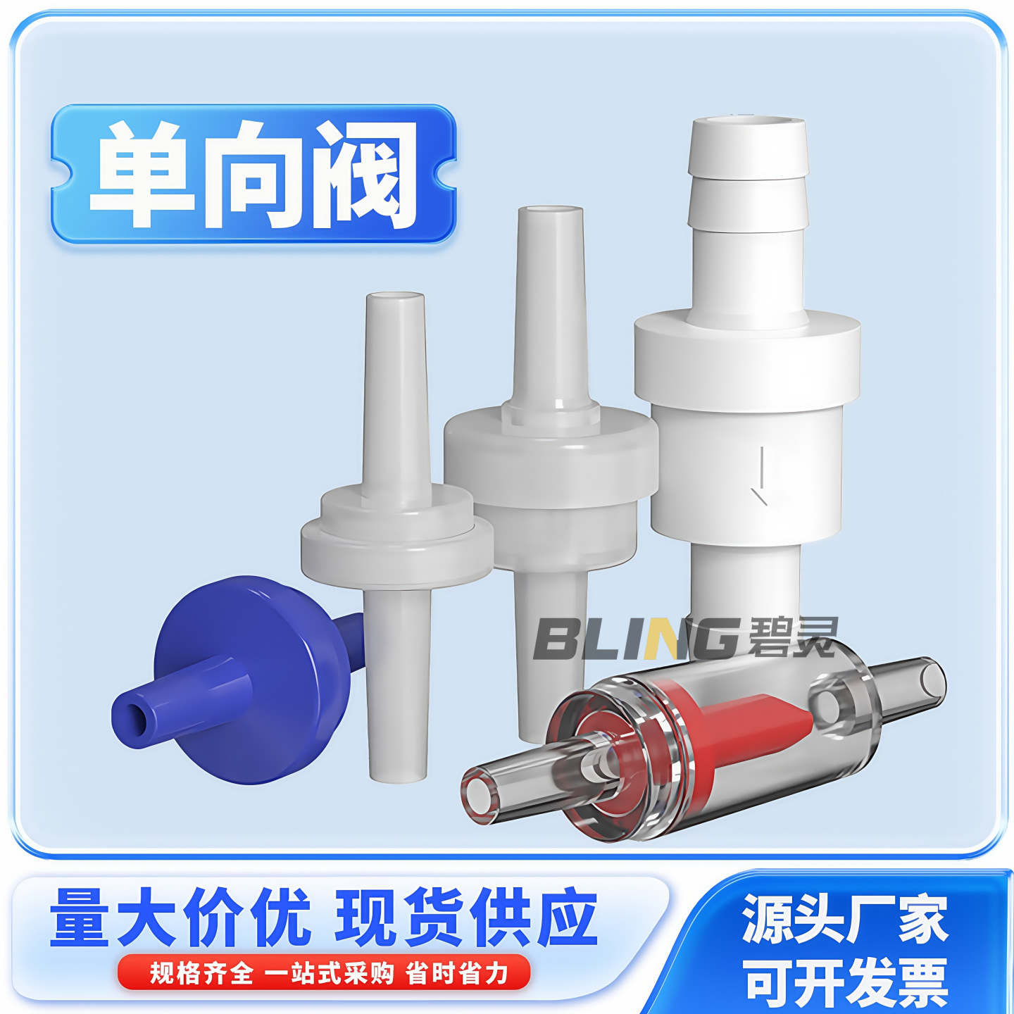 供各类塑料管接头,液体弹簧单向阀,气体单向阀:应用于制药,分析仪器,点胶设备,医疗仪器,精密机械,化学装置、包装机械、水处理及消毒设备、充气产品、引挚发动系统,呼吸麻醉设备、治疗台、培养箱、生物工程、循环水冷却等管路系统,水族等领域。规格有(1/16—3/4):直通式,角式,L型,T型三通,Y型三通,四通(十字、∏型)、六通等],F通,E通,4-20通分配器,开关调节阀,浴室用品,卫浴配件,养殖阀二通阀,变径通,穿板接头,其它塑胶配件。主要用于连接硅胶管,PU管,PVC管,特氟龙管,气动设备等。材质:PP,PE,尼龙,POM,ABS等。 耐压8-10公斤