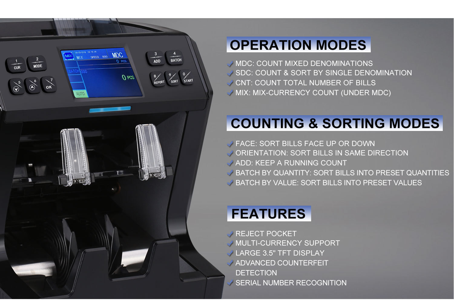 多国通貨硬貨計数機、業務用紙幣計数機、スマートマネーオフィス分類機、高速紙幣計数機