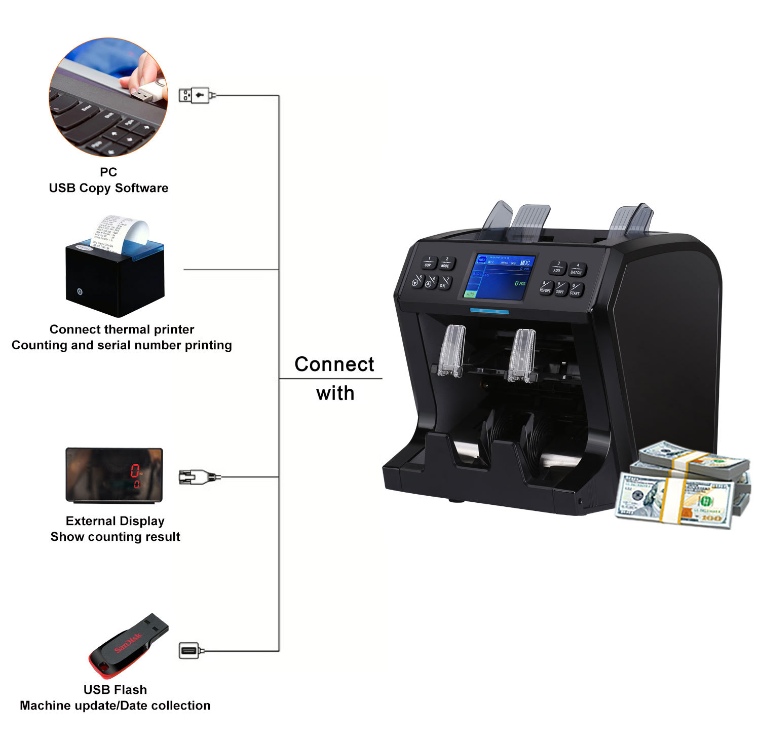 フルタッチスクリーン通貨紙幣計数機、多外国通貨紙幣検出機、米ドル、ユーロ、ポンド、人民元紙幣分類機