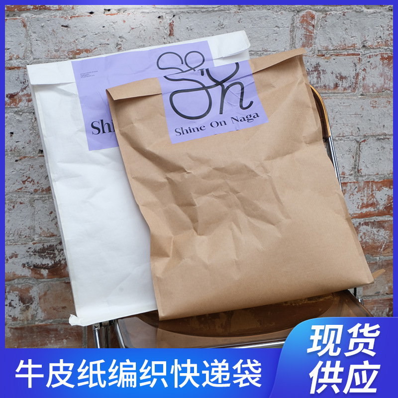白いクラフト紙袋工場牛革編組包装袋紙袋服装宅配便防水袋クラフト紙袋卸売り