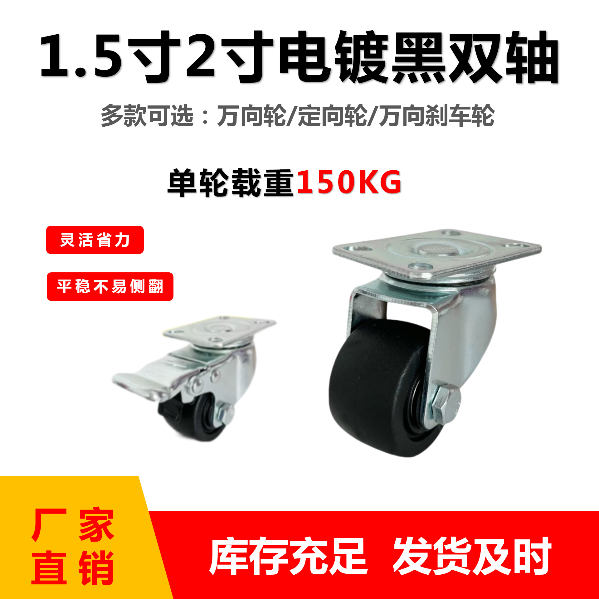 メーカー直販1.5/2インチ電気泳動軽量黒二軸自在/方向性/自在ブレーキキャスター