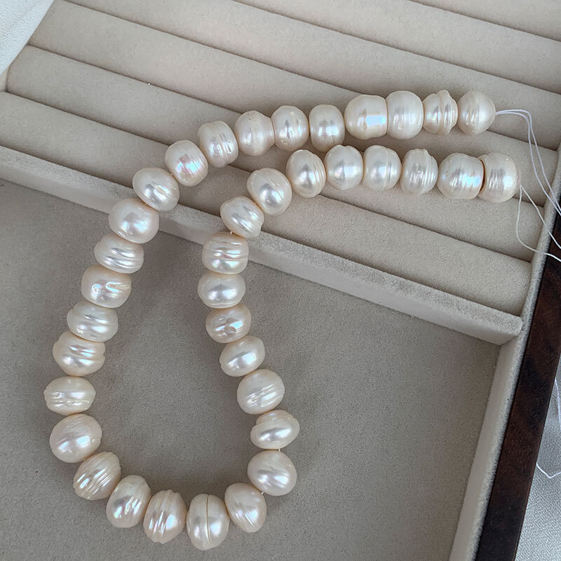 12-14mm大螺纹无核天然淡水扁形珍珠老蚌老珠半成品diy项链手链选