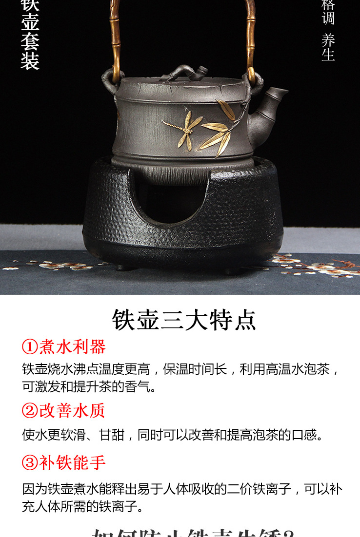 茶器日本式手作り鋳鉄ポット家庭用養生湯湯鋳鉄ポット鉄ティーポット復古新中国式茶室置物