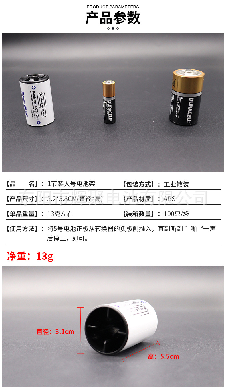 金属製パッド AA-C5型から2号電池への変換用電池コンバーター(黒、ノーブランドロゴ)の卸売供給