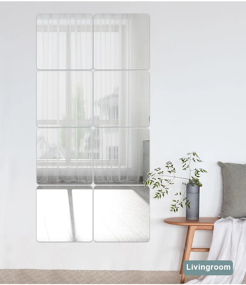 3 装饰镜,和镜子一样清晰。近处和镜子完全相同,远处(2米外)物体会十分轻微的模糊。能达到完美的装饰效果。