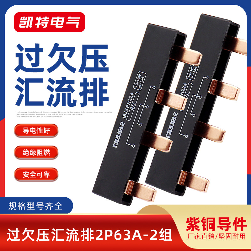 総スイッチ保護器過電圧電気バス2P63A空け端子紫銅黒色白色