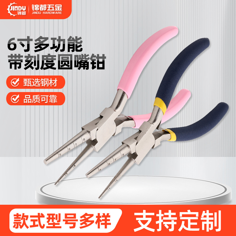 6インチ多機能スケール付き丸口ペンチピンク丸口ペンチジュエリーアクセサリー巻線ビーズツール