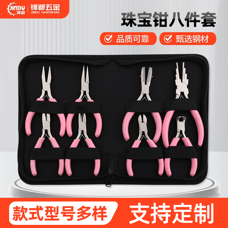 卸売ジュエリープライヤー8点セット、DIY手作りピンクジュエリープライヤー、プライヤーツール、多機能尖ったペンチを供給します。