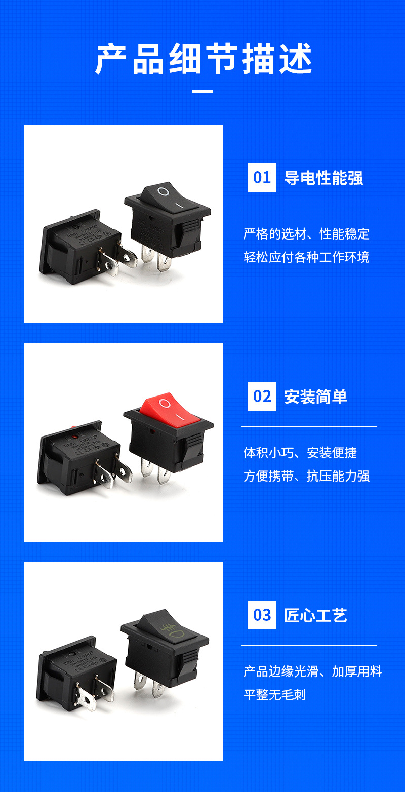 船型スイッチLY606大D4柄スイッチ破壁機ジューサー点動スイッチ