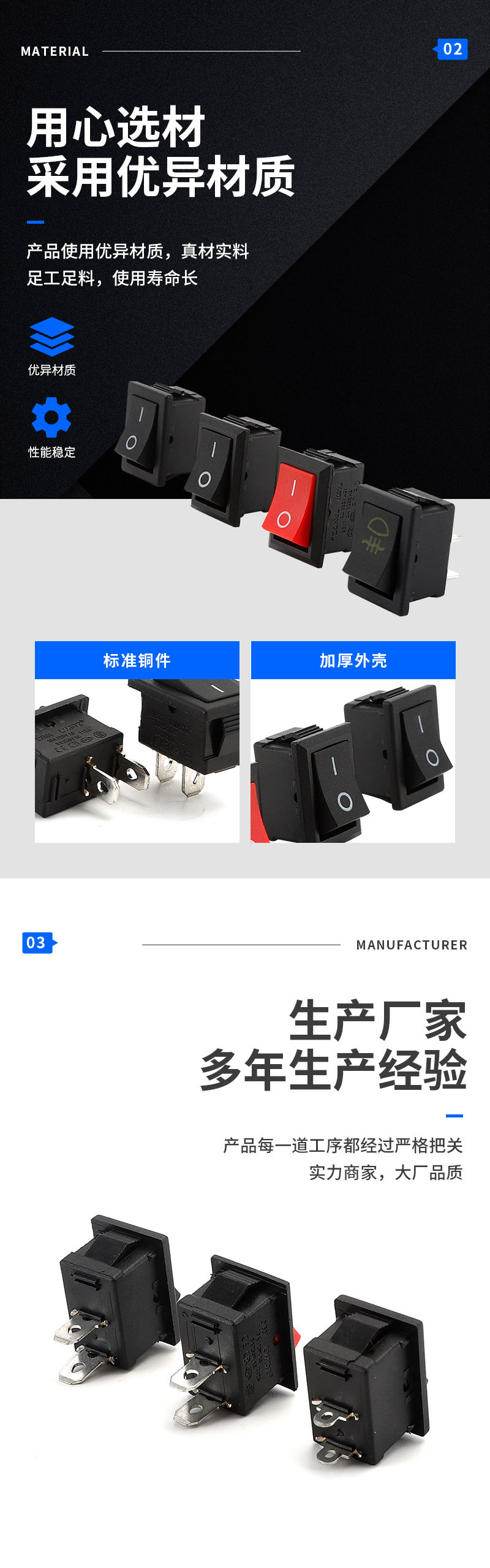 Kcd1角型電源スイッチ15*21四脚ly601dブラック10a大電流船型スイッチボタン