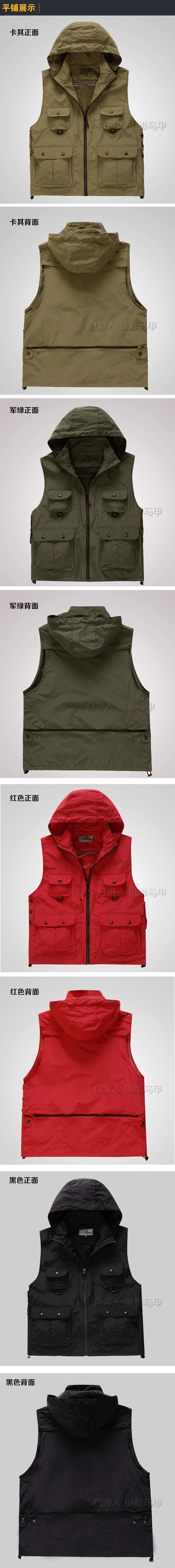 男性屋外速乾撮影釣り馬甲レジャーモデル帽子付き多ポケットボランティア広告作業服馬甲