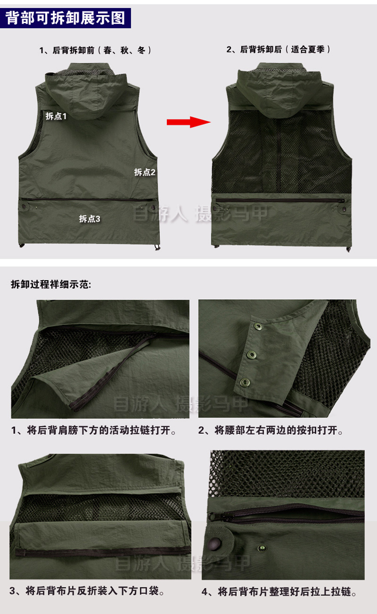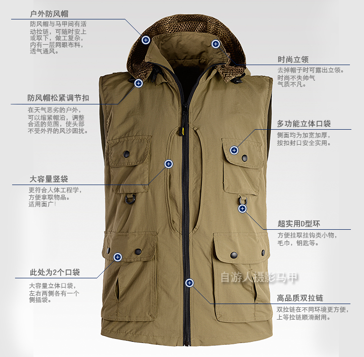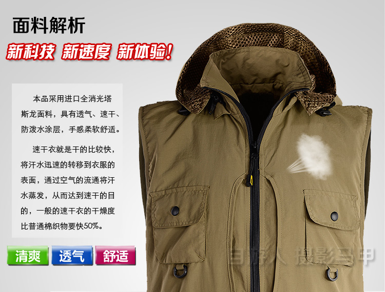 写真馬甲夏秋速乾防水屋外広告釣り多ポケットベスト男性広告馬クリップフード
