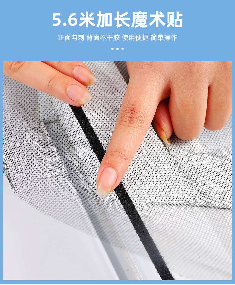 夏の防蚊虫網戸ネットは家庭用の自粘式窓網戸ネットの簡易網戸カーテンにマジックテープをつけます。