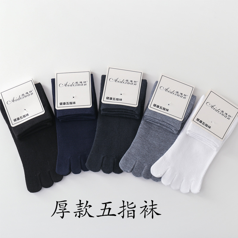 五本指の靴下の男性の厚い中筒の男性の靴下の足の指の靴下の保温は汗の純色の男性の靴下の分の指の靴下の卸売りを吸います。
