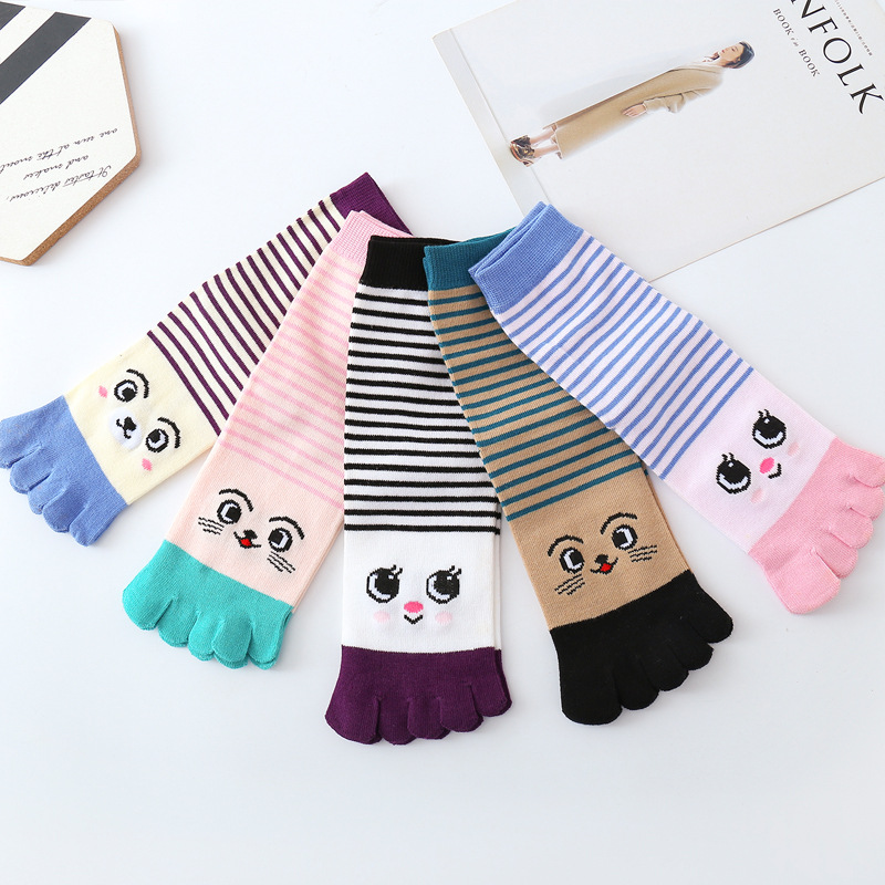 五本指の靴下の女性綿の中筒の漫画の靴下の秋冬の足の指の靴下の保温は汗を吸います。