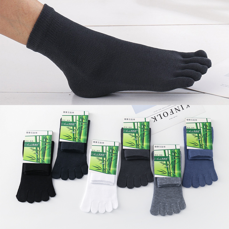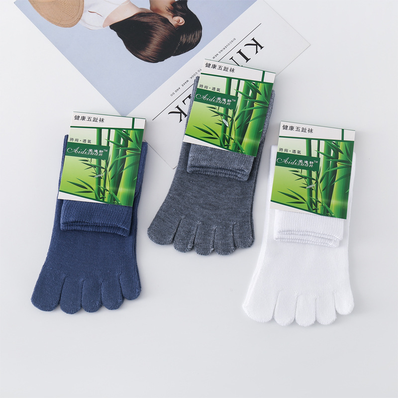 春と秋の指の靴下の男性の純色の指の靴下の短い筒は汗を吸います。