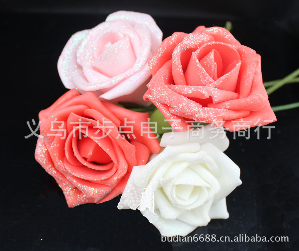 スポット卸売りミニシミュレーションpeバラの花3.5cm加糸泡花頭diy頭飾り花輪材料