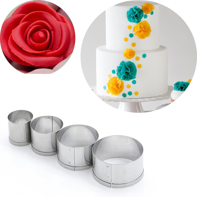使用方法:将翻糖先放在翻糖硅胶垫上用擀面杖擀平,然后用这款花瓣模具的10个款分别切2-3个相同尺寸的花瓣形状,在花瓣的中间处插入提前准备好的铁丝,将其放在海绵垫上,使用不锈钢雕刻组将花瓣的边缘擀出花瓣边缘的立体感,接着将准备好的色素涂抹上去,然后将花瓣放在晾花垫上晾一段时间。最后等花瓣定型后,将花瓣从小到大围放在一起,即是一朵美丽逼真的玫瑰花。
