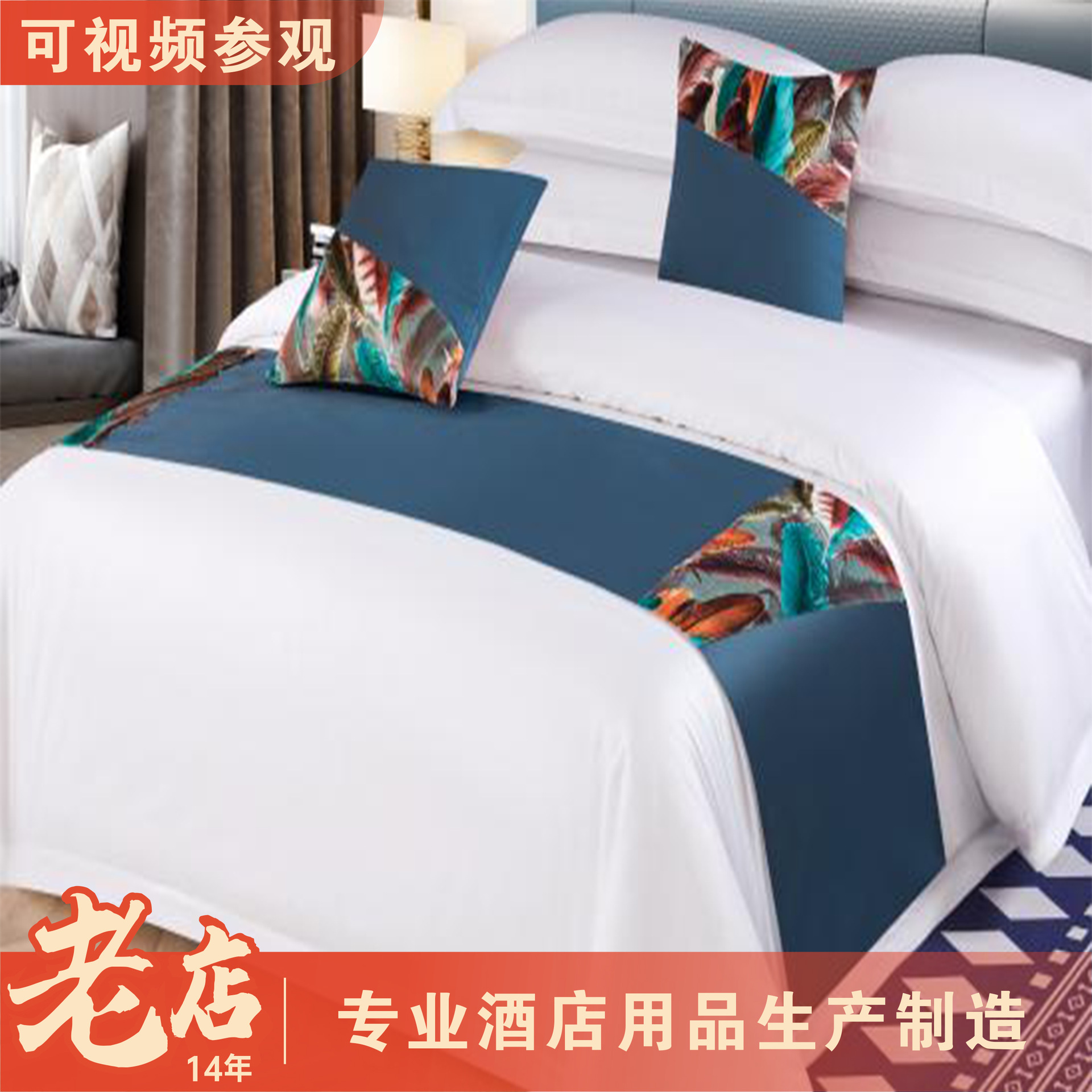 酒店床尾巾高档床尾巾床旗桌旗数码印刷条床上装饰布酒店抱枕批发
