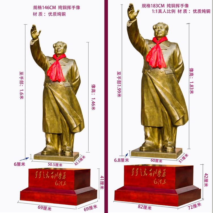 サイズ 183cm-純銅が手を振って像,146cm-純銅が手を振って像