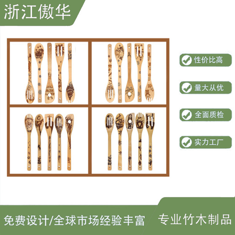 日本式竹シャベルスプーンセット卸売り竹シャベル鍋専用無漆6点セットシャベルロゴスプーン卸売り