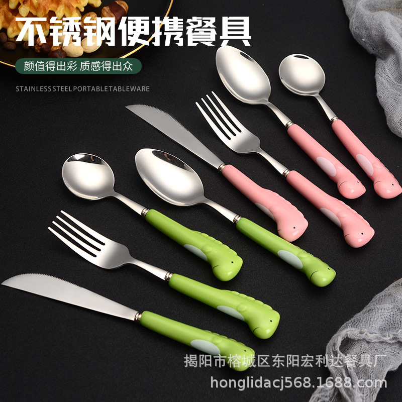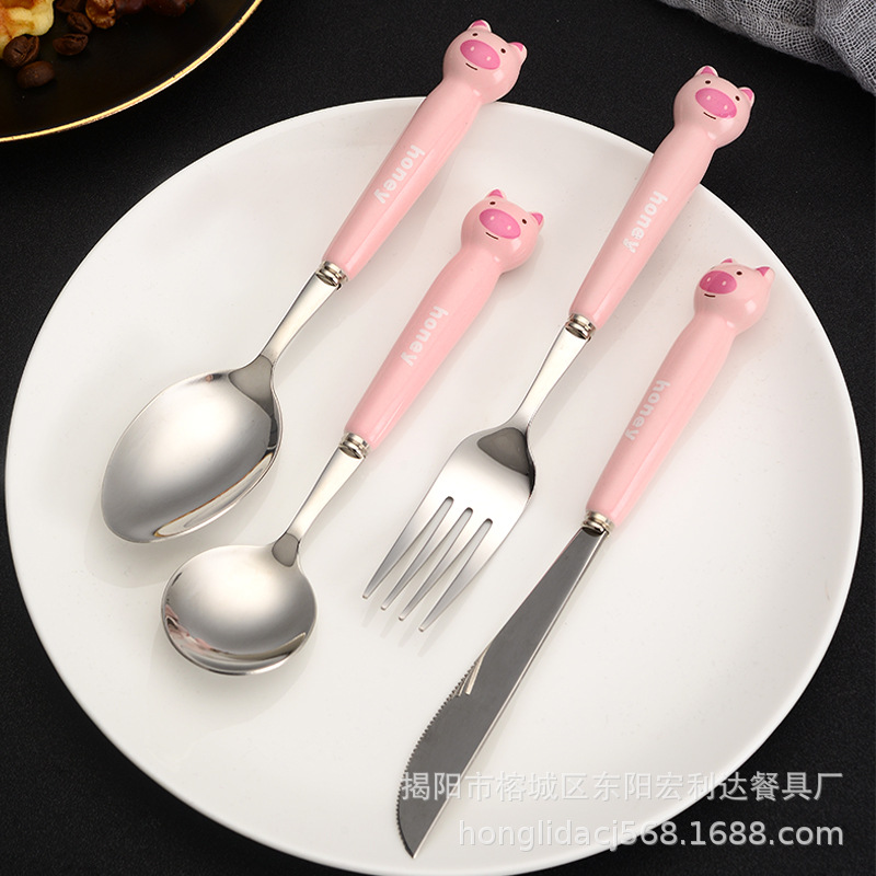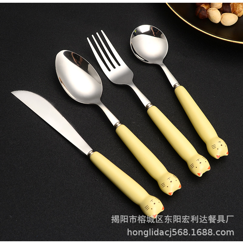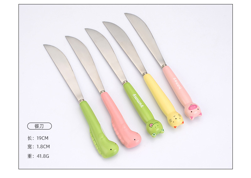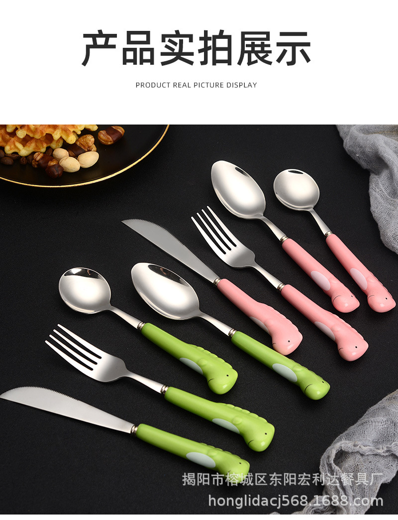 304ステンレス製食器 漫画風キュートでいたずらなカエル セラミックハンドル 洋食ナイフ・フォーク・スプーン 家庭用デザートナイフ・フォーク・スプーン
