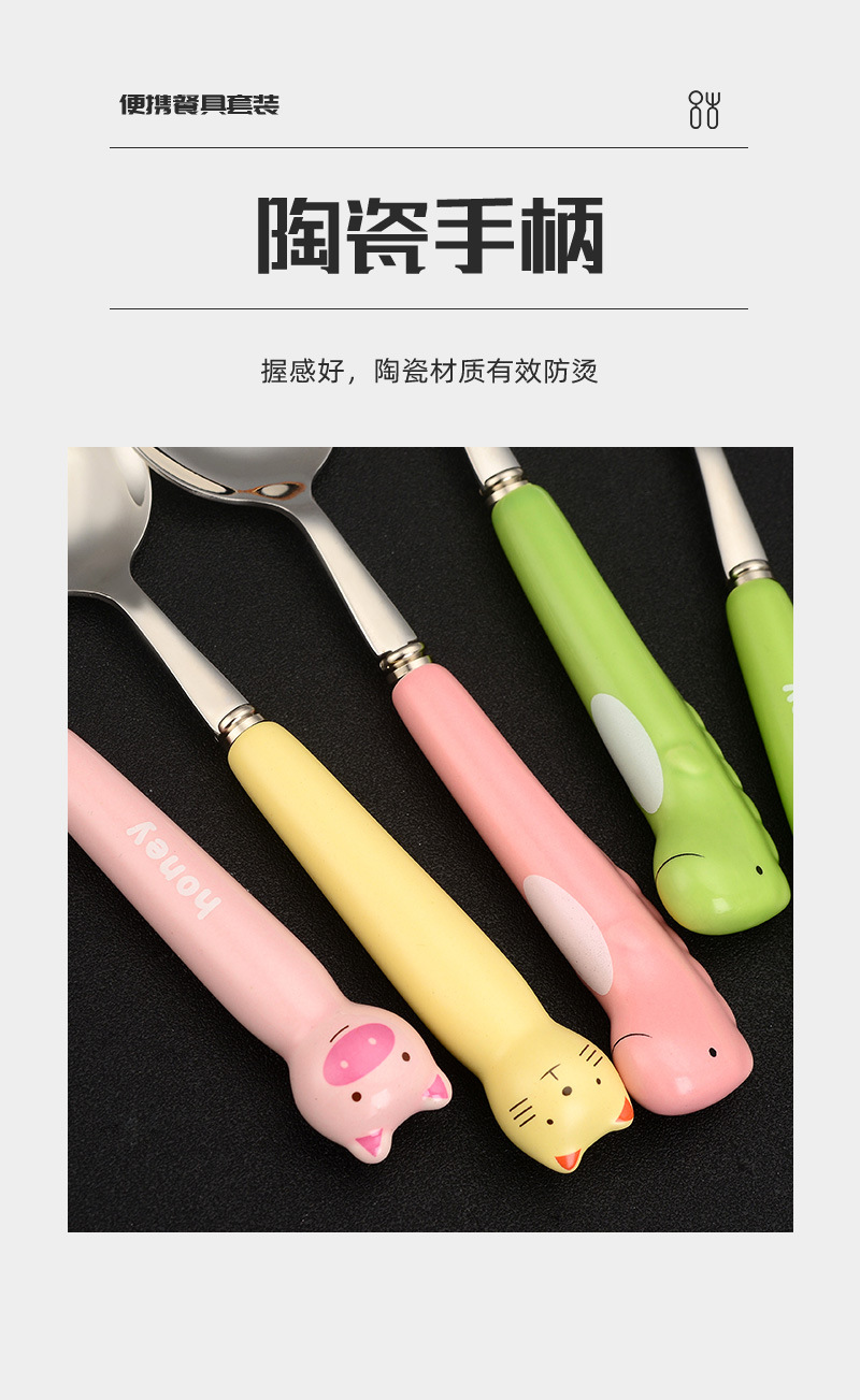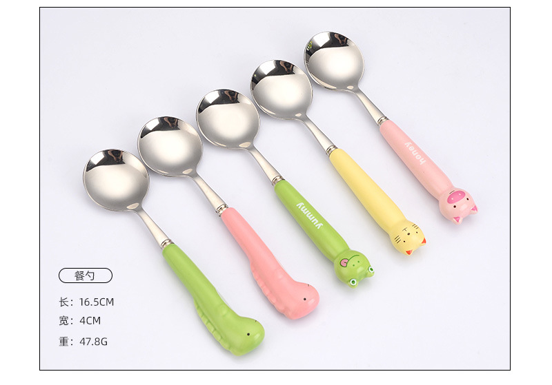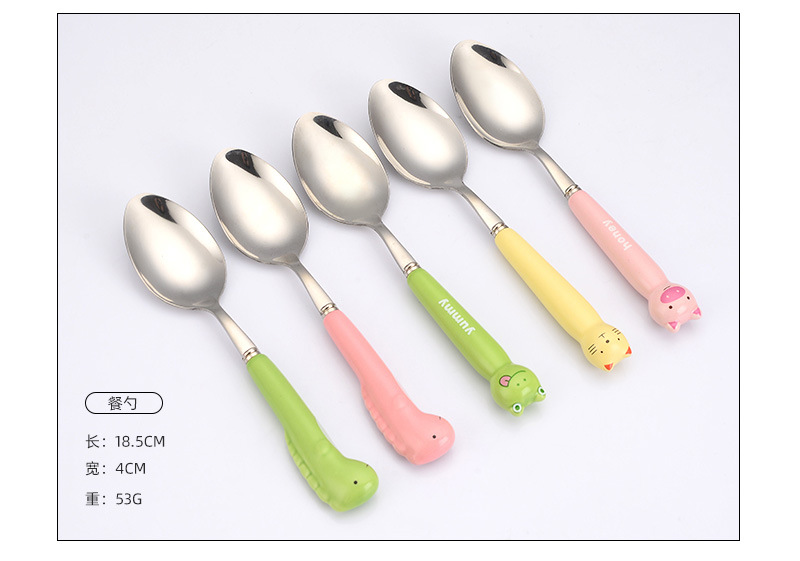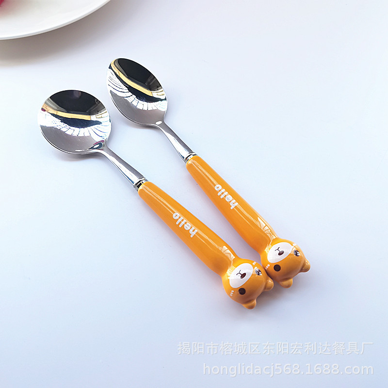 304ステンレススプーン陶磁器柄スプーン漫画ぼんやりしたガチョウ果物フォークスプーン甘い家庭用かわいいスプーン
