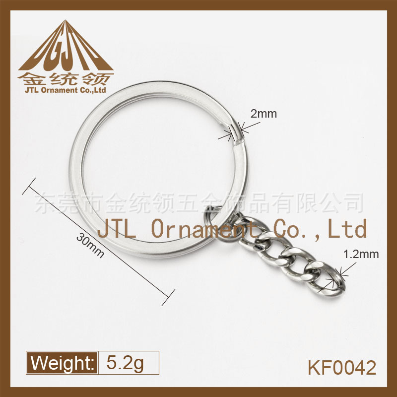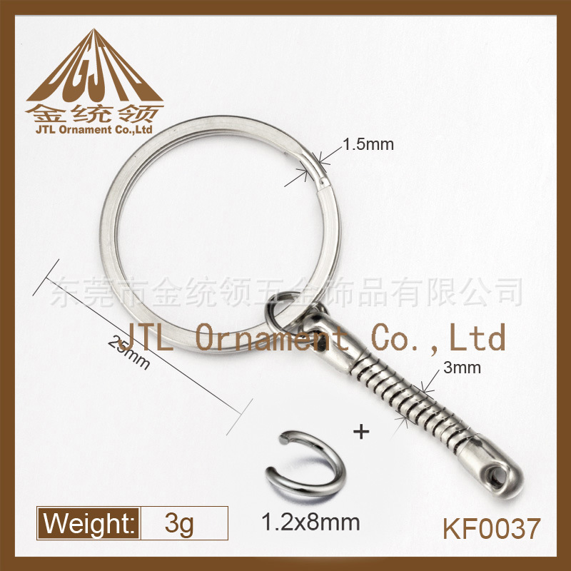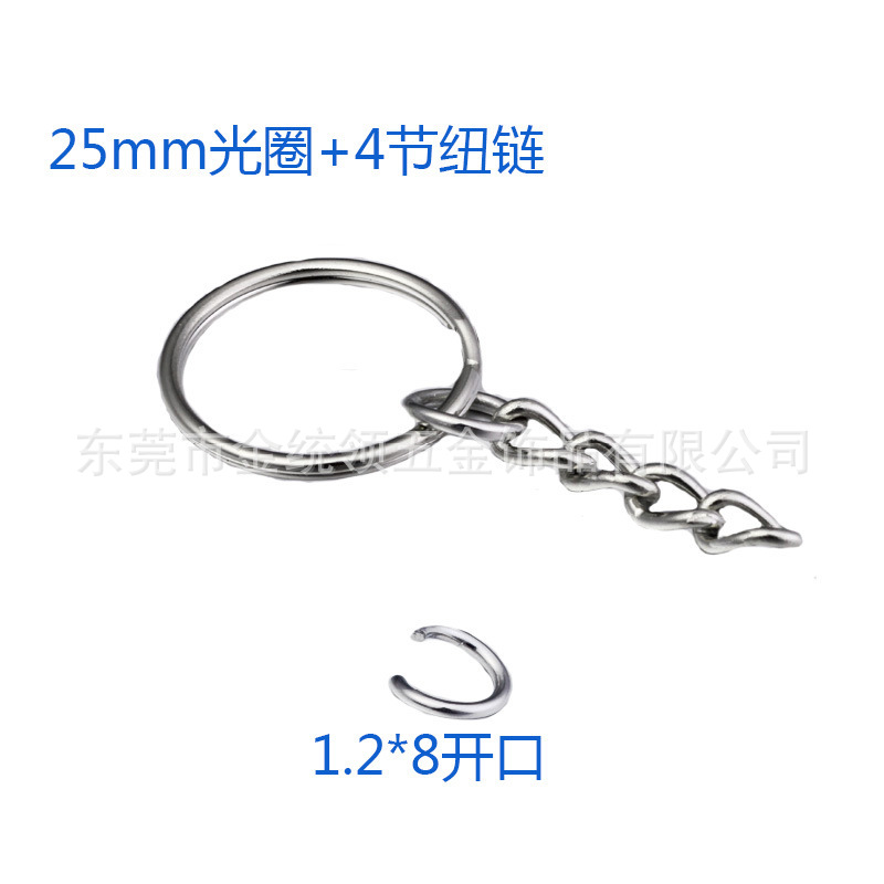 匙圈类:钥匙圈又名匙圈,金属钥匙圈,锁匙圈,钥匙环,金属钥匙扣,钥匙链,钥匙扣链,钥匙圈链。本厂生产的不锈钢钥匙圈有SUS304不锈钢,316不锈钢,316L不锈钢等材料。造型有平圈(平面圈、扁圈)、光圈、角圈(三角圈、斜面圈)、花圈(压花圈)、带纽链圈、带扁链圈等,按线径和外直径大小分有不同规格,本厂生产的匙圈表面处理一般为镍色和环保镍,本厂拥有自己的电镀车间,可保证质量,快速出货。本系列产品质量上乘,价格优惠,货期准确,应用广泛,适用于玩具、箱包、手袋、服饰、饰品、礼品、灯饰、文具、家具、电子、首饰、鞋帽、精品、工艺品等产品。如需要特殊形状和其他颜色请来图来样订做,谢谢