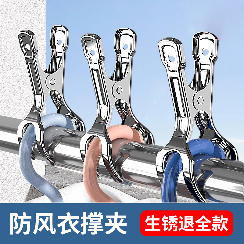 防风夹晾衣衣撑夹不锈钢开口夹子固定器多功能衣服防风夹子晒被子