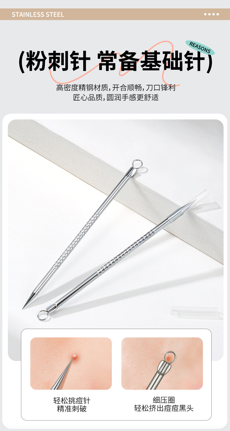 LMLTOP ステンレス製ロングニキビ針コレクション 角栓ニキビ針 黒ずみ除去 ニキビ除去ツール E097