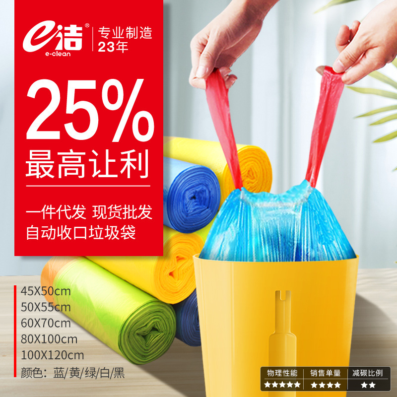 e-clean 大型ゴミ袋肥厚巾着タイプ家庭用キッチン家庭用破れない巾着防臭袋卸売