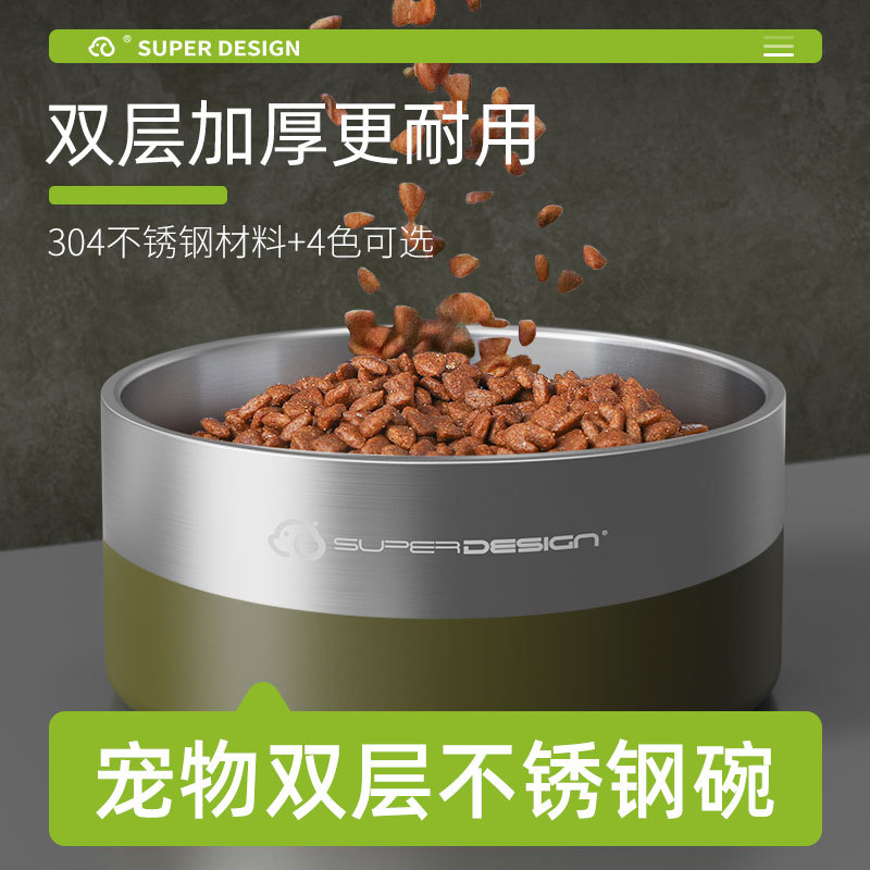 ヒュープーペット用品猫碗ステンレスペット碗犬犬犬食盆犬ペット水糧碗両用